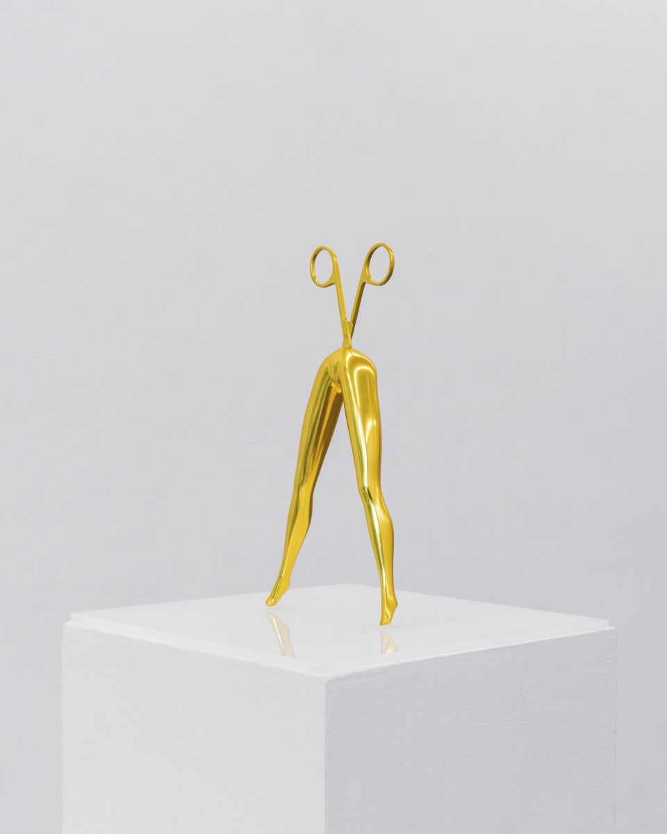 "High Rider“ is the name of one work in the show. It is depicting female legs, which are united with a pair of scissors as her upper body. I chose it as the name because it depicts the mood of the work for me. Curator Peter Friese suggested it as the title of the whole show.