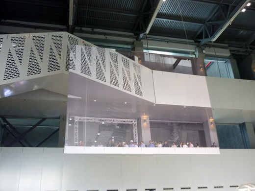 the clever camouflage backside of the massive screen showing Jeffrey Shaw & Sinan Goo's work