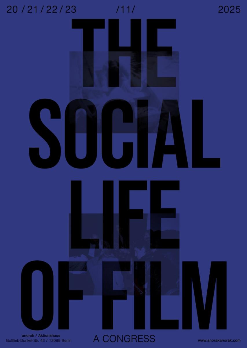 The third edition of The Social Life of Film takes place from 20–23 November 2025 in Berlin. Hosted by anorak (Lukas Ludwig, Johanna Markert), carrick bell (Xanadu), and Kristofer Woods in collaboration with Aktionshaus, the congress will centre on alternative structures of support.