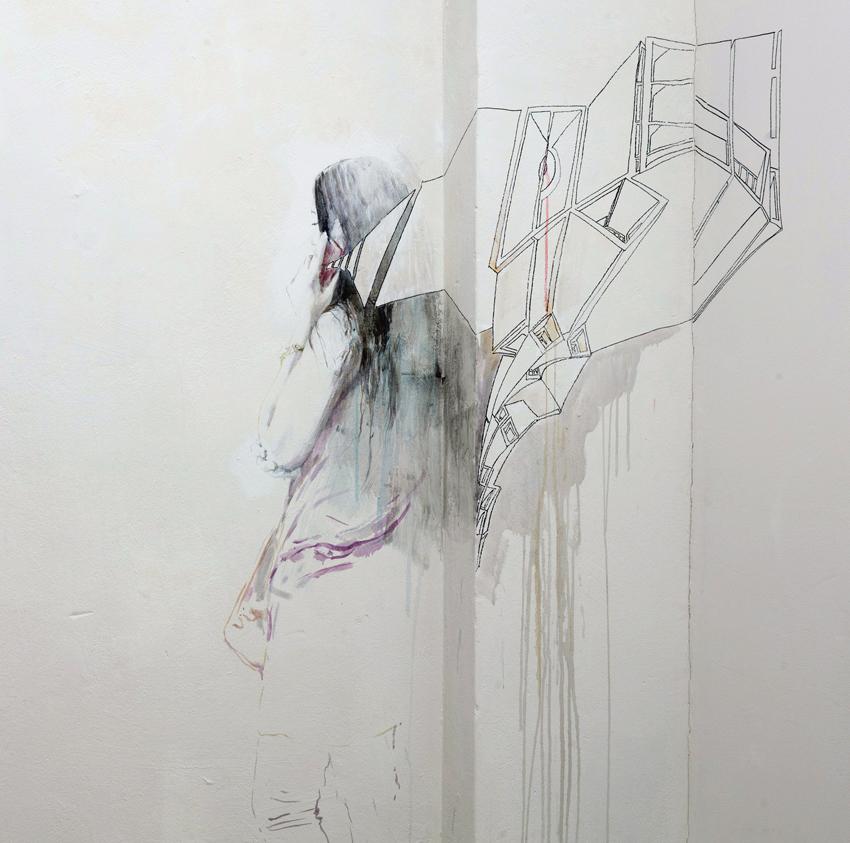 The art of cooperative walldrawing is a search for the artistic compatibility and perpetuation of contrarian elements. Graphic cutting points are the adapter of the artists diversity in interpration. Disagreements increase the tension of lines and surface, grafic characteristics and the drawn graphic.