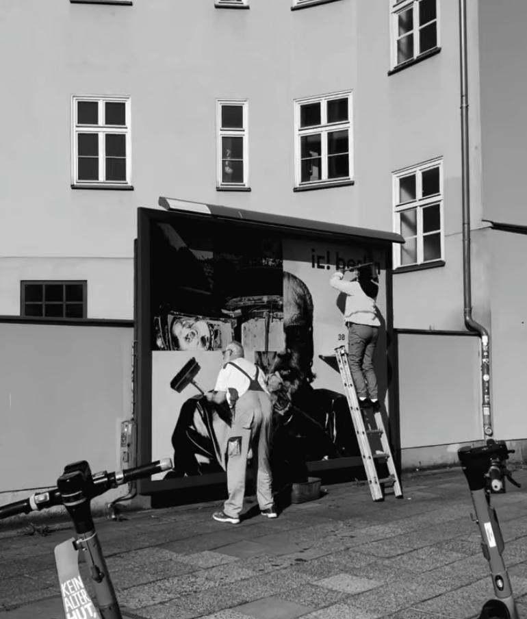 Location coordinates: 52.527189, 13.415033 (In front of the billboard)