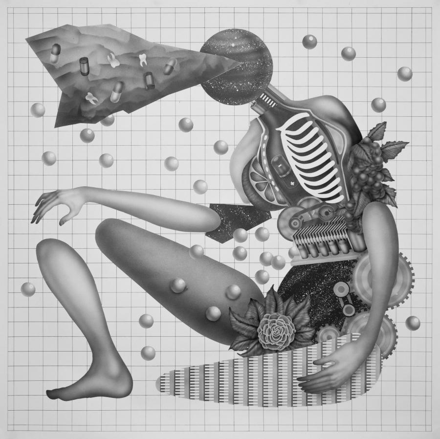 Meticulously executed, teeming with tiny figures, stroboscopic geometries and visionary universes, Hvidtfeldt’s work is a ground where the artist is a whimsical demiurge of new worlds arising from the unconscious. Nevertheless, his imaginary cosmos doesn’t lack of well-read quotes, references to historical art movements, symbols, graphics, literature, films and music.